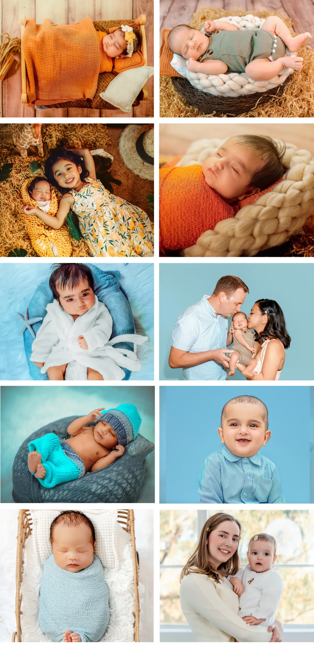We welcome outfit changes and encourage 2-3 different looks during your session. Our studio is equipped with changing rooms and mirrors. While we provide some basic props, you're welcome to bring meaningful items that personalize your session. We'll discuss all these details during your consultation.